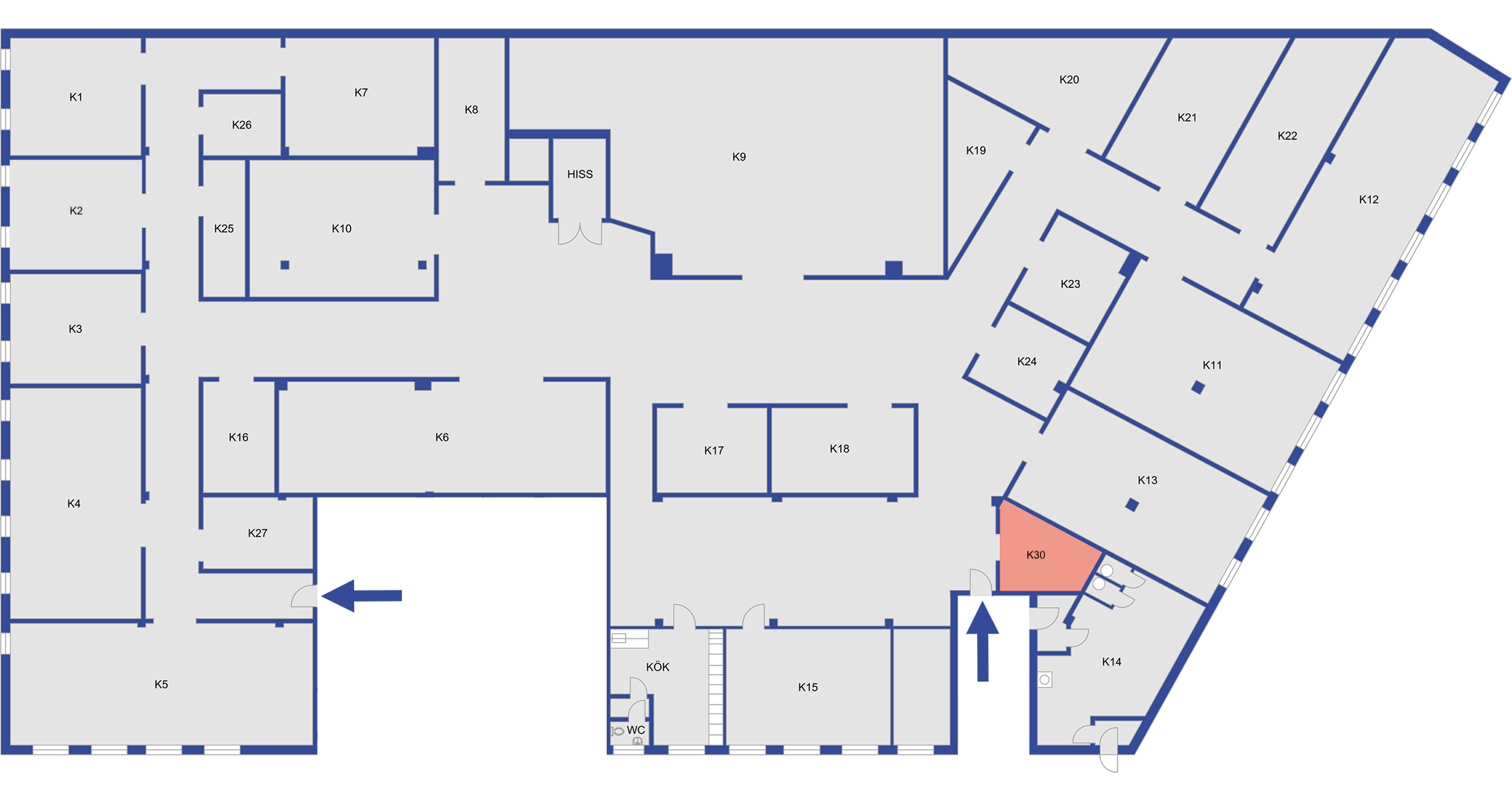 Tillgång via hiss och lastbrygga: dagtid
